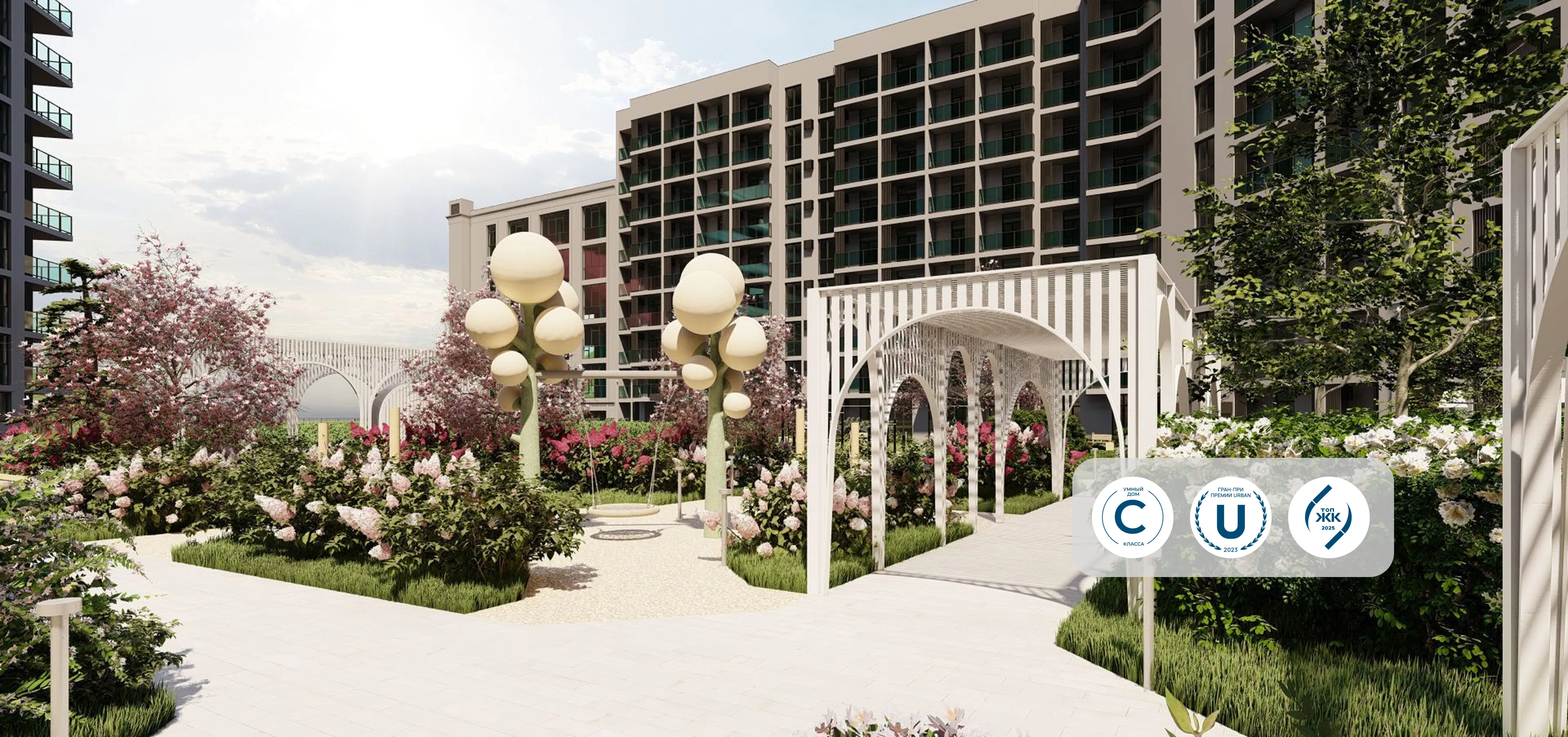 Многоуровневое озеленение и ландшафтный дизайн внутренней и придомовой территорий создают атмосферу, благодаря которой окружающее пространство будет радовать свежестью практически круглогодично.