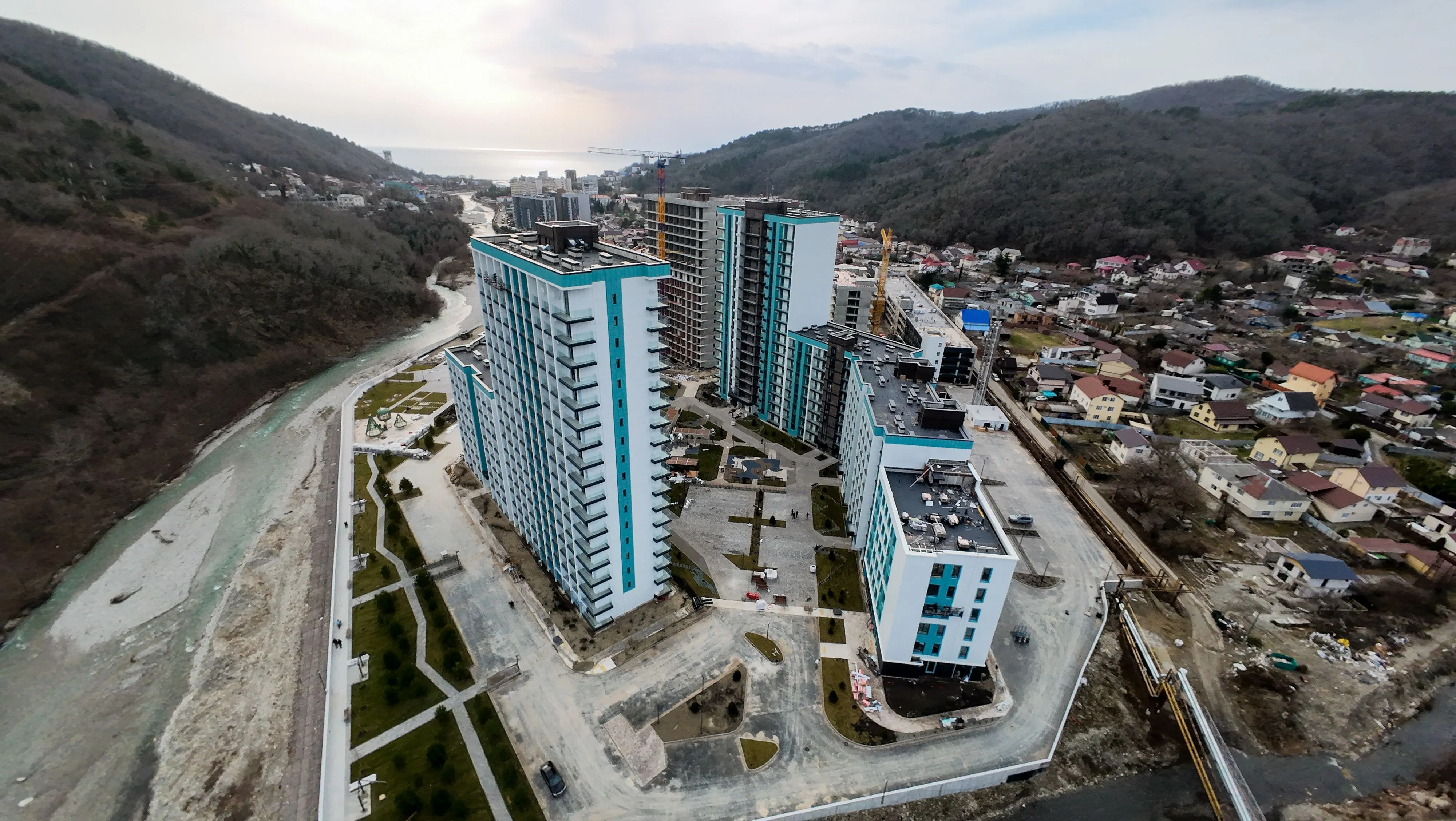 Жилой комплекс расположен в живописном месте на берегу реки Небуг, из окон открываются потрясающие виды на реку и горы. Резиденция предлагает своим жителям разнообразные удобства: открытые бассейны, спортивные и детские площадки, а также широкий спектр услуг прямо на территории комплекса, включая химчистку, аптеку, фитнес-зал, СПА-центр, продуктовые магазины и многие другие, создавая комфортную и самодостаточную среду проживания.