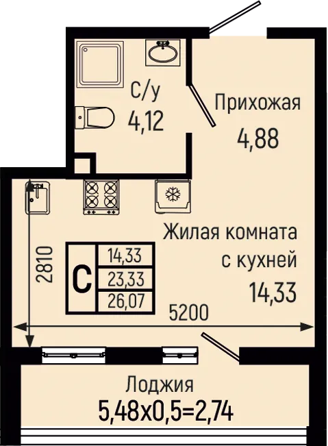 26.07 м2