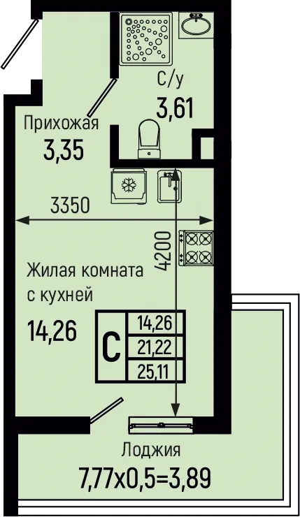 25.11 м2