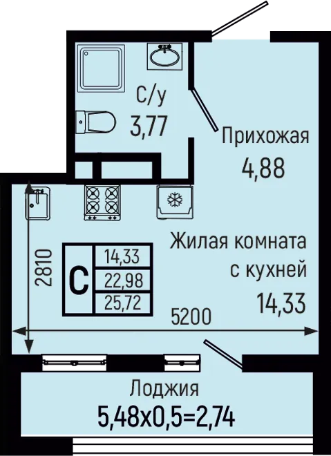 25.72 м2
