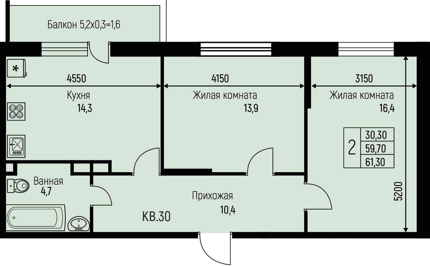 61.3 м2