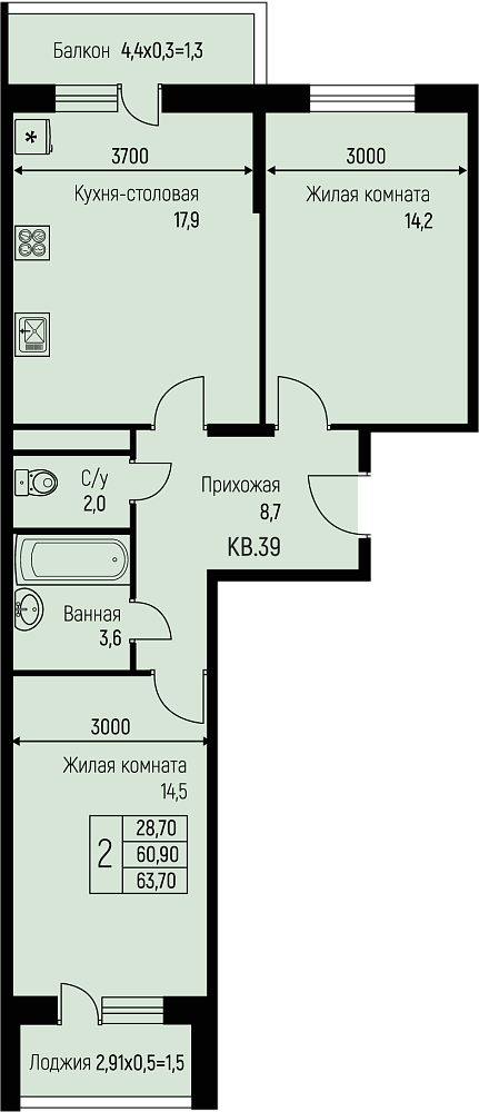 63.7 м2