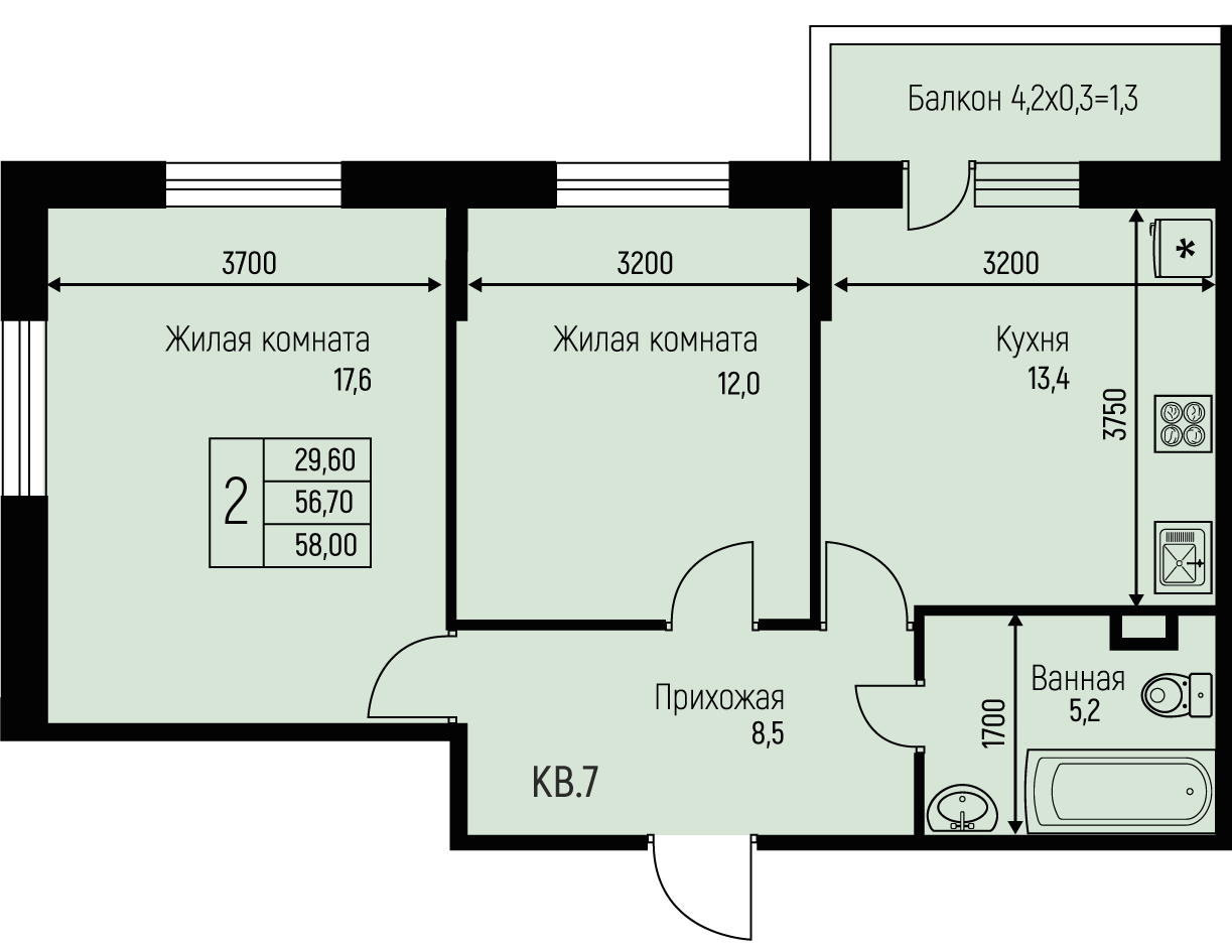 58 м2