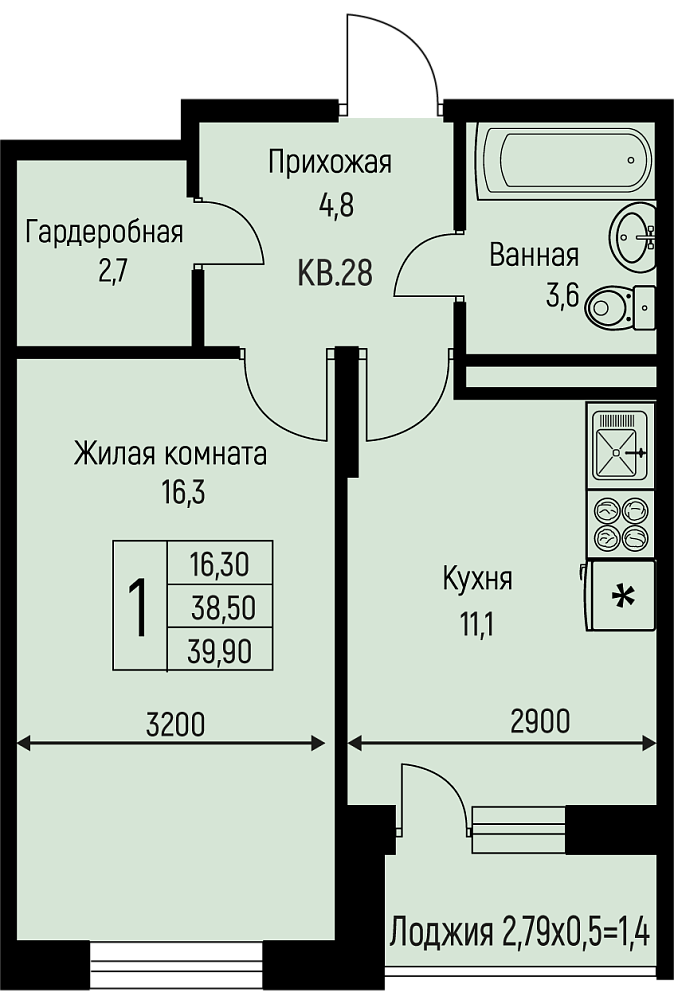 39.9 м2
