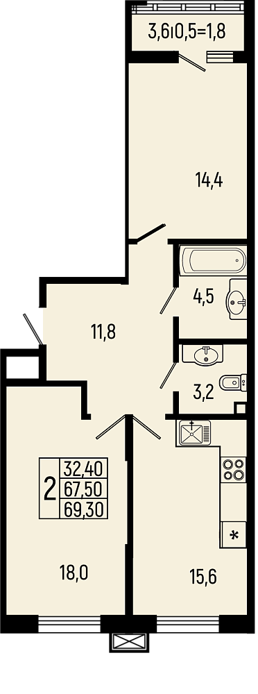 69.3 м2