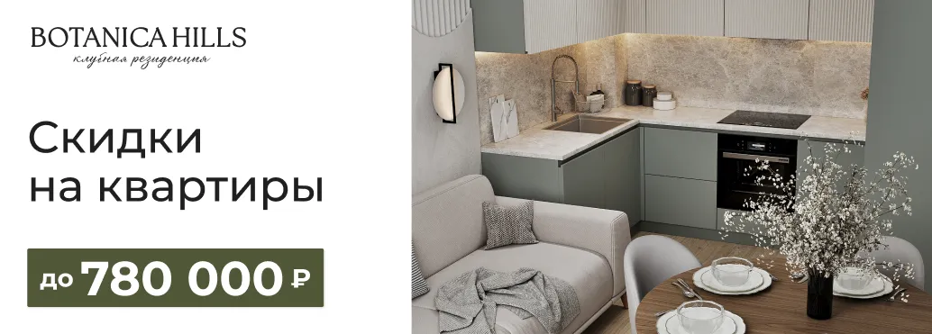 Покупая 1-комнатную квартиру в ЖК Botanica Hills для постоянной жизни или студию для летнего сезона на море, вы получаете скидку – 25 000 рублей на каждый квадратный метр или ремонт в подарок. Это уникальные условия покупки с выгодой до 780 000 ₽!