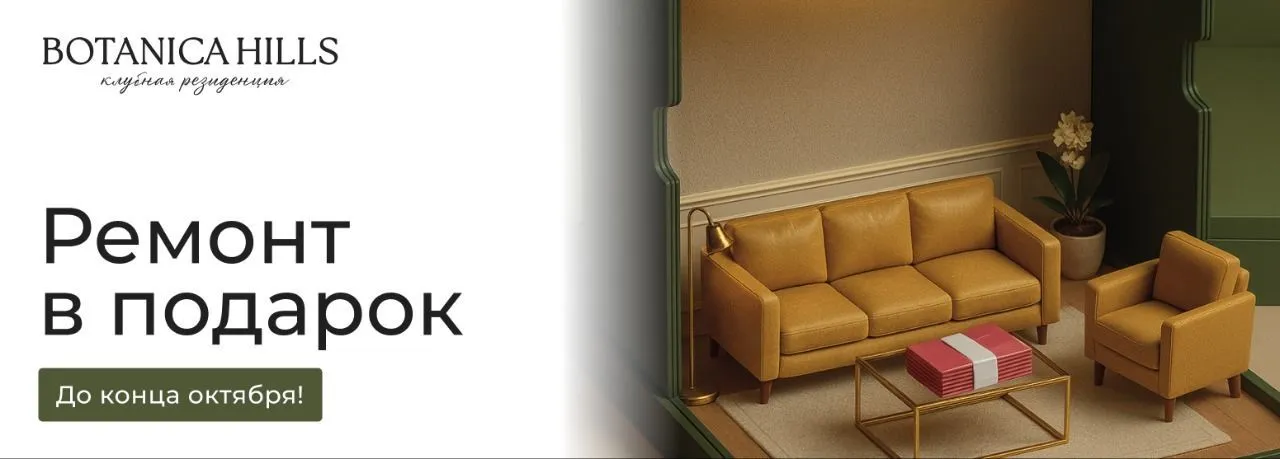ЖК Botanica Hills регулярно устраивает сюрпризы для своих клиентов и один из них – это ремонт в подарок при покупке 1-комнатной квартиры площадью от 31 м2 или студии площадью 22,87 м2.